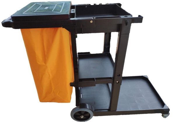 SIMPLI-MAGIC Janitorial Cart, 330 lbs Capacity – 3-Shelf Commercial Housekeeping Cleaning Cart on Wheels, 25 Gallon Bag with Lid – Stable, Smooth Movement