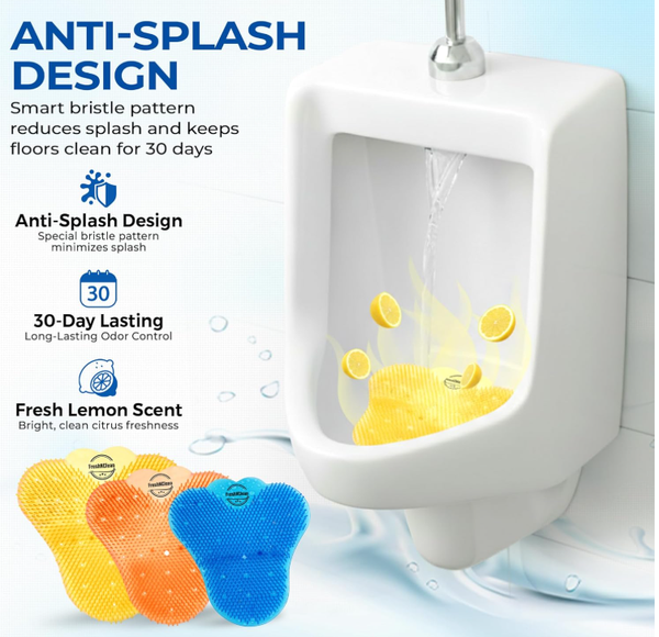 - [ FRESHNCLEAN URINAL SCREENS ] - Presented in a durable bundle of 24, features a trio of distinct scents within each package. Every urinal screen mat is individually wrapped in large quantities, ensuring the preservation of their fragrances. It Has 8 extra duty urinal screen pads with the refreshing aroma of the ocean, 8 citrus oranges and finally, a set of 8 packs with the scent of lemons in vibrant yellow.