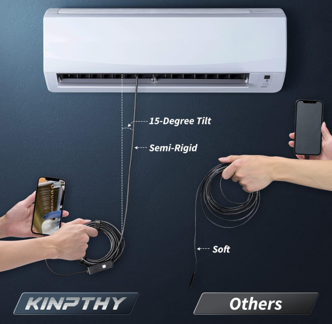 Endoscope Camera with Light, 1920P HD Borescope Tools with 8 Adjustable LED Lights, Endoscope with Semi-Rigid Snake Camera, Inspection Borescope for iOS and Android - 16.4ft Single Lens